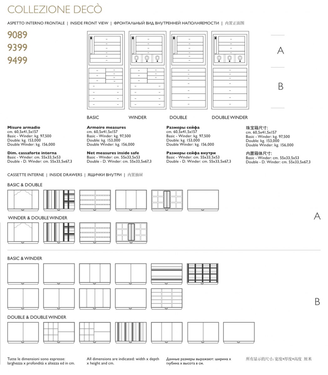 В верхней части шкафа, встроен сейф с четырьмя ящиками + 3 швейцарских механизма для автоматического подзавода часов. Сейф имеет ручки, покрытые 24-каратным розовым золотом и биометрический замок, благодаря которому дверь можно открыть только с помощью отпечатка Вашего пальца!